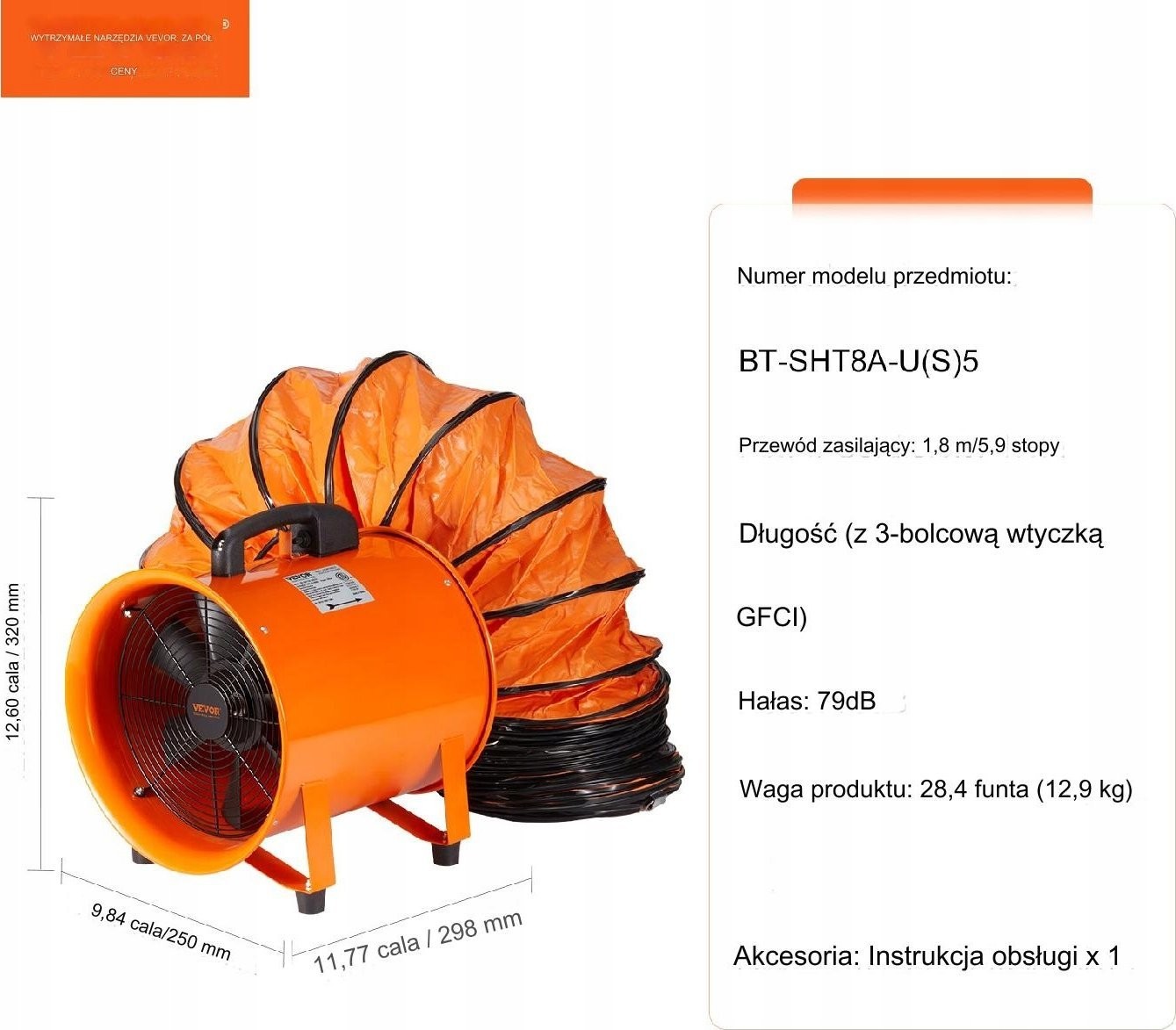 Kategoria Wentylatory ścienne i kanałowe Marka Vevor