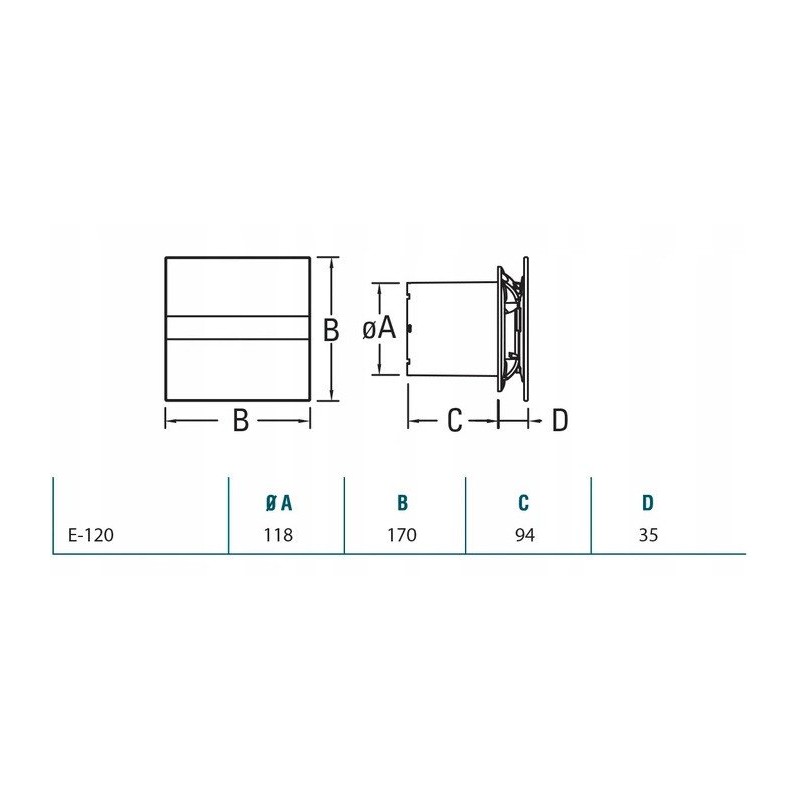 Specyfikacja techniczna wentylatora Cata E120 G