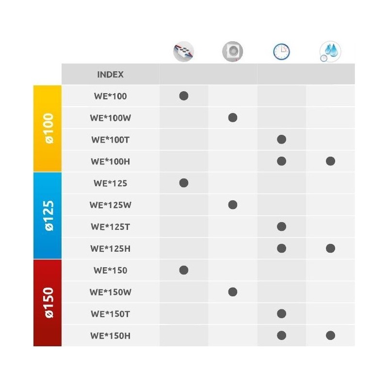 Wentylatory wyposażone w funkcję opóźnienia wyłączenia wentylatora. Wentylator uruchamiany i wyłączany jest włącznikiem ściennym będącym elementem instalacji elektrycznej budynku. Po wyłączeniu wentylatora włącznikiem ściennym jego wyłączenie następuje dopiero po upływie czasu ustawionego na potencjometrze układu sterującego wentylatorem. Opóźnienie wyłączenia jest regulowane płynnie w zakresie 3 min. – 30 min.