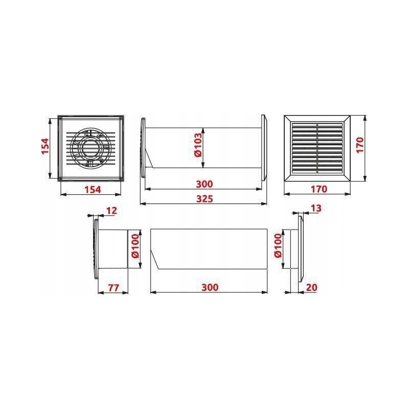 - odcinek kanału wentylacyjnego (Ø100 mm, długość 300 mm)