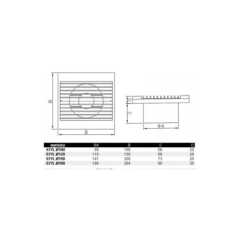 Rodzaj: wentylator osiowy, wentylator ścienny, wentylator wyciągowy