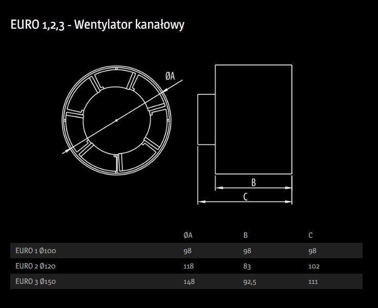Dospel Wentylator kanałowy Dospel Euro 1 100mm 007-0051