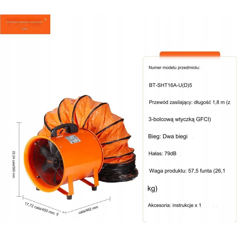 Przenośny Przemysłowy Wentylator Wyciągowy 406 mm Wąż 5 m