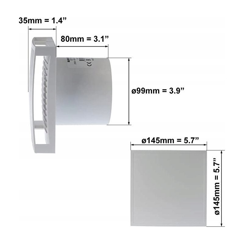 EUROPLAST Ø 100 mm wentylator łazienkowy z czujnikiem wilgotności i timerem z białym frontem, cichy wentylator