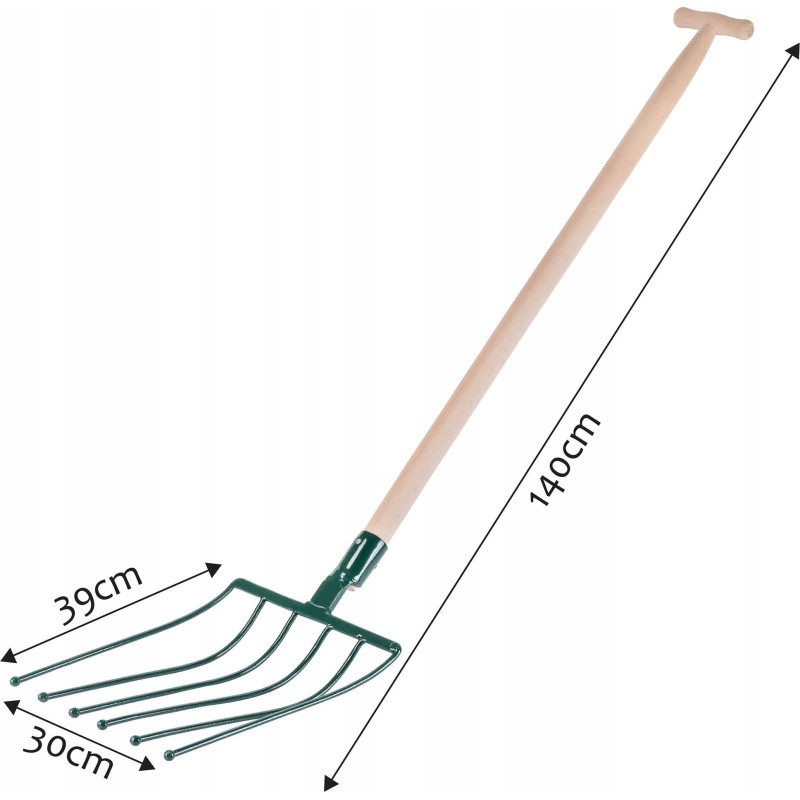 Narzędzie jest bardzo lekkie, więc gwarantuje komfortowe manewrowanie oraz zbieranie ziemniaków i buraków z pola czy działki. Widły zostały zakończone rączką typu T, która świetnie dostosowuje się do dłoni, zapewniając kontrolę nad ruchami i niwelując ryzyko obtarcia palców.
