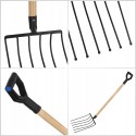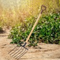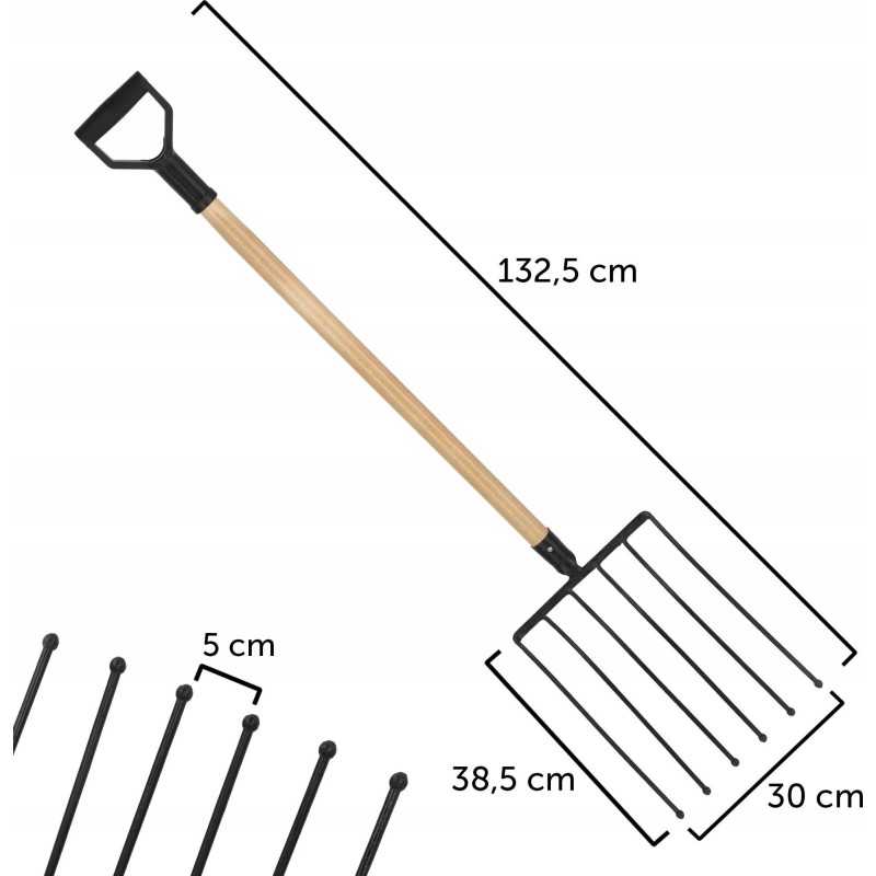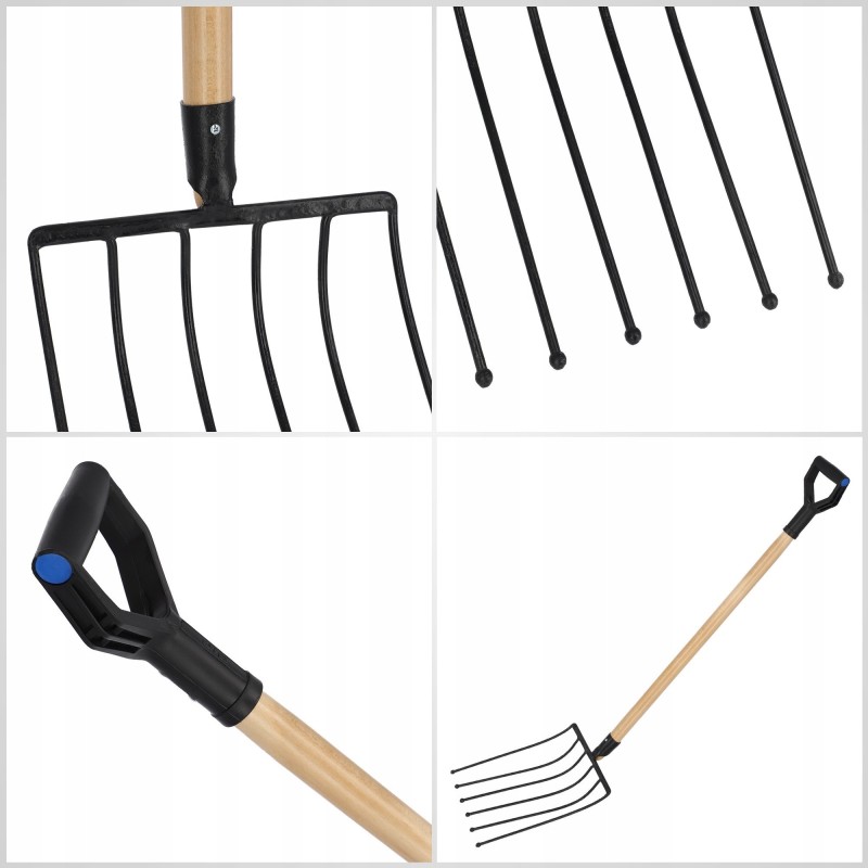 - Stalowa część robocza: wytrzyma spory opór i nie złamie się nawet podczas intensywnych prac. Wygięta w środku precyzyjnie zbiera i utrzymuje korzenie roślin okopowych.