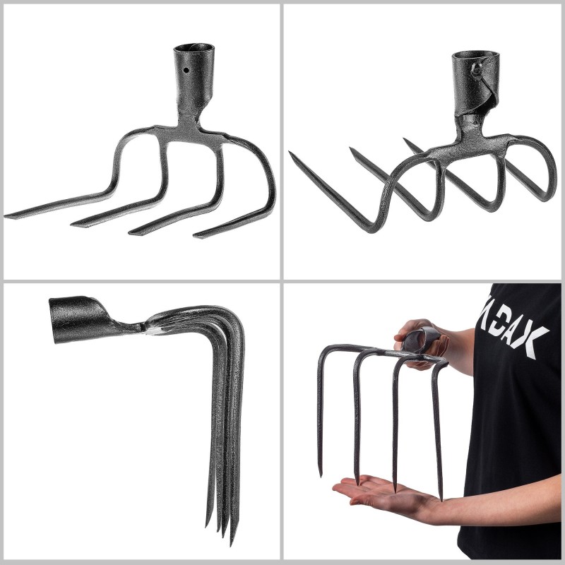 ✅UNIWERSALNE - haki 3 i 4-zębne oraz motyka Morand nie posiadają zintegrowanego z nimi trzonka. Dzięki czemu możesz dopasować rękojeść do własnych potrzeb i preferencji.