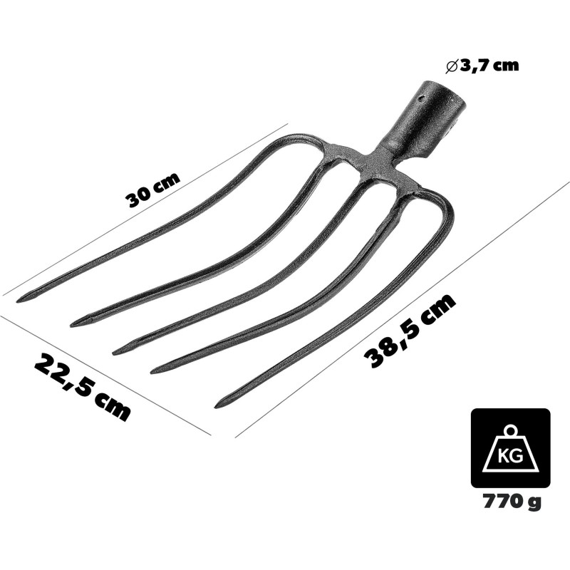 Kadax Widły 5-Zębne Gospodarcze Ogrodowe Do Siana Obornika Stalowe Bez Trzonka