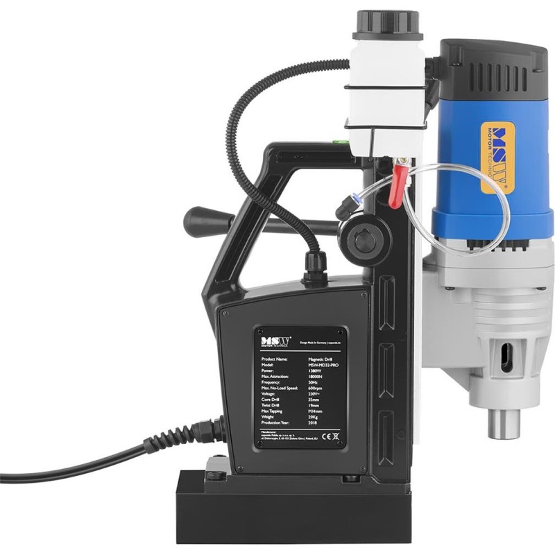 Wiertarka magnetyczna MSW za sprawą swojej konstrukcji pozwoli na pracę w trudnych warunkach oraz w różnych położeniach np. w pionie. Jest to możliwe dzięki silnemu elektromagnesowi o mocy 11500 N, który utrzymuje urządzenie w stabilnej pozycji. Stosunkowo niewielka waga oraz długi przewód zasilający (2 m) wpływają na możliwość ulokowania wiertarki w dowolnym miejscy. Walizka ułatwi transportowanie całego zestawu.