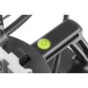 Łatwa obsługa sprzętu to zasługa dużych przycisków ulokowanych po jednej stronie wiertarki. Dzięki nim można uruchomić silnik i elektromagnes oraz wybrać kierunek wiercenia. Znajduje się tam również bezstopniowe pokrętło do regulacji prędkości. O właściwe zachowanie kąta ustawienia maszyny dba wbudowana poziomnica.
