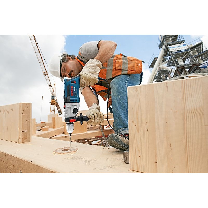 - Wysokiej mocy silnik Bosch (1.300 W) o dużym momencie obrotowym umożliwia wykonanie dużych otworów, wiercenie, pracę z użyciem koronek wiertniczych oraz pił otwornic, wkręcanie i mieszanie substancji