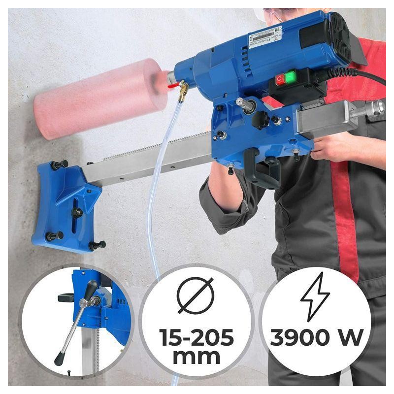 Jeśli jednak jest jeszcze większy niż projekt, na przykład podczas prac budowlanych lub remontowych, wiertarka rdzeniowa musi być dostępna. Jest stabilny, wytrzymały i mocny, dzięki czemu jest optymalną wiertnicą do pracy na mokro lub na sucho i idealnie nadaje się do wiercenia w kanałach, betonie lub żelbecie. Dane techniczne: nadaje się do wiercenia mokrego i suchego wymiary: ok. 24/84/36 cm (szer. x wys. x gł.) waga: ok. 21 kg Ø wywierconego otworu: ok. 15-205 mm rozmiar uchwytu narzędziowego: około 1 palca Napięcie znamionowe: 220-240 V. częstotliwość: 50 Hz pobór mocy: około 3900 W. prędkość: prawdopodobnie 580 obr / min poziom hałasu (ciśnienie): określony / K = 3 dB (A) 88,6 dB (A) poziom hałasu: określony / K = 3 dB (A) 101,6 dB (A) długość kabla: 3,5 m długość węża wodnego: 3 m materiał: mieszanka metali, miedź, plastik Zawartość opakowania: 1 x wiertarka rdzeniowa