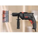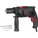 Wiertarko-młotowiertarka ta ma wiele przydatnych funkcji, na przykład funkcję odwracania. Jest to przydatne na przykład podczas luzowania lub usuwania śrub. Przydatny wskaźnik funkcji pokaże Ci, który tryb pracy jest aktywny. Narzędzie jest dostarczane z uchwytem bocznym, który zapewnia wygodne dwuręczne sterowanie i zawiera miernik głębokości, który ustawia głębokość wiercenia dla ślepych otworów. Wiertarka jest dostarczana w komplecie z zestawem trzech wierteł do ścianek o średnicy 5, 6 i 8 mm.