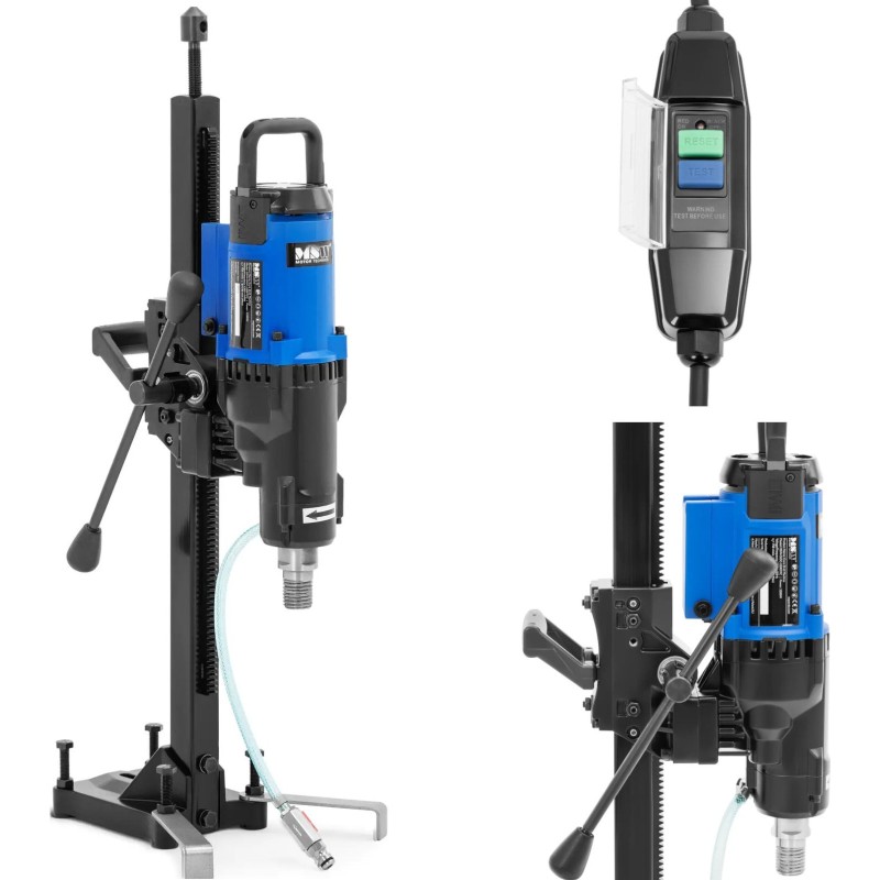 - - Diamentowa wiertnica do betonu jest wyposażona w zabezpieczenie przed przeciążeniem, a przewód ma zintegrowany wyłącznik różnicowoprądowy (PRCD) zapewniający bezpieczną pracę.