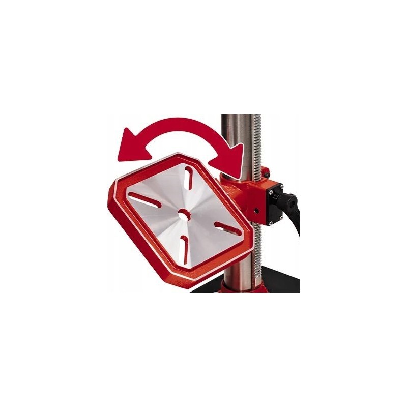 Stołowa konstrukcja wiertarki Einhell TC-BD 630/1 umożliwia bezstopniową regulację wysokości, a także obrót o 90° oraz przechylenie o 45°. Dzięki temu użytkownik ma pełną kontrolę nad procesem wiercenia, co zwiększa precyzję i efektywność pracy.