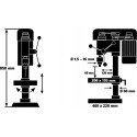 Wiertarka ma wymiary 70,00 × 42,50 × 26,00 cm oraz waży 21,50 kg, co czyni ją stabilnym i solidnym narzędziem, które z łatwością można umieścić w warsztacie.