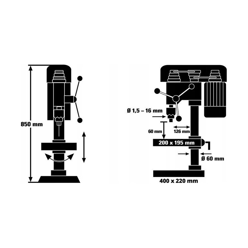 Wiertarka jest wyposażona w solidny uchwyt zębaty, który obsługuje wiertła Morse’a o średnicy od 1,5 mm do 16 mm. Taki system mocowania zapewnia stabilność i bezpieczeństwo podczas wiercenia, co jest kluczowe dla uzyskania precyzyjnych rezultatów.