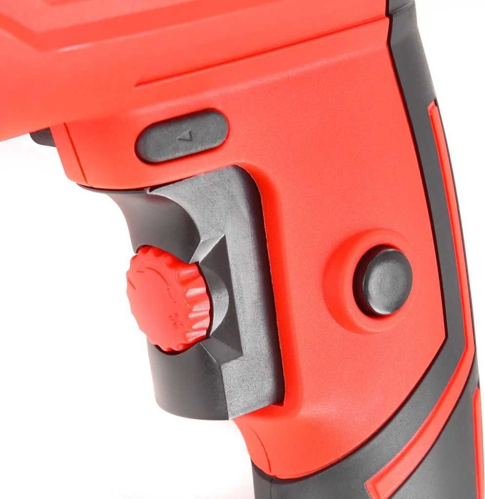 HECHT 1073 Mocna elektryczna wiertarka udarowa czeskiej marki Hecht. Urządzenie posiada wydajny silnik elektryczny o moc 1000 W. Przeznaczona do stosowania w gospodarstwie domowym, przy wszelkiego rodzaju pracach remontowych i monterskich czy w warsztacie lub serwisie. Przełącznik kierunku obrotów został wygodnie usytuowany bezpośrednio na uchwycie, co pozwala na szybkie i łatwe przełączanie podczas pracy. Obroty silnika w zakresie 0-2800 obr/min. Maksymalna średnica narzędzi mocujących to 13 mm. Maksymalna średnica wiercenia w metalu 13 mm, w betonie 13 mm, i w drewnie 25 mm. Urządzenie posiada wygodną i ergonomiczną rękojeść. Do zestawu dodano wysokiej jakości zdejmowaną rękojeść boczną oraz ogranicznikiem głębokości.