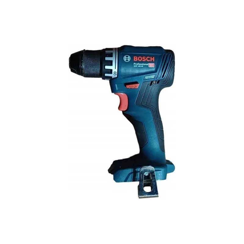 - punkt znaku wypunktowania: Nowy model GSR 18-45 z silnikiem bezszczotkowym, maksymalnym momentem obrotowym 45 Nm i prędkością obrotową 1900 min, Do wszystkich standardowych zastosowań: wytrzymała metalowa podszewka 13 mm zapewnia doskonałe przenoszenie momentu obrotowego, Doskonała obsługa: lekka konstrukcja z tylko 159 mm długości głowy i klipsem do paska dla łatwego noszenia, Akumulatory i ładowarki są w pełni kompatybilne z systemem Bosch Professional 18 V oraz z wieloma innymi narzędziami marki AMPShare,