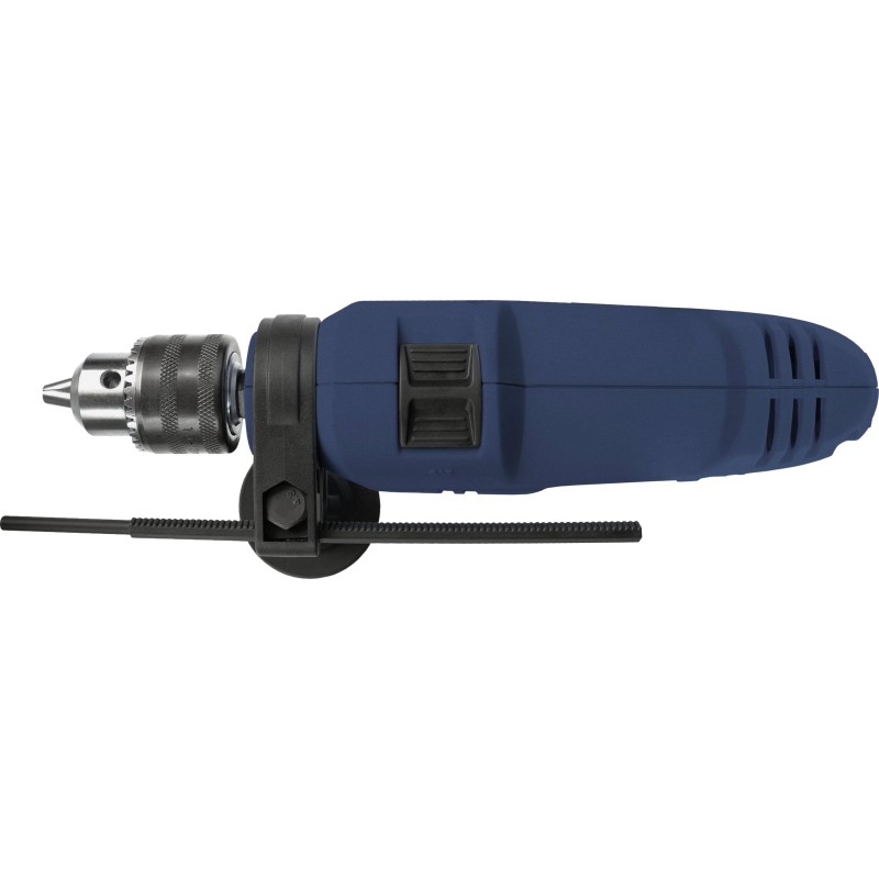 Wiertarka udarowa jednobiegowa CELMA Professional PRCk 13GEO jest przeznaczona do wiercenia otworów w metalu, drewnie, tworzywach sztucznych – przy ruchu obrotowym wrzeciona oraz do wiercenia otworów w materiałach budowlanych – przy ruchu obrotowo-udarowym wrzeciona. Do ustawienia odpowiedniego rodzaju pracy wiertarki służy przełącznik rodzaju pracy umieszczony u góry korpusu wiertarki. Wiertarka PRCk 13GEO może być wykorzystana także do wkręcania i wykręcania wkrętów i śrub o maksymalnej średnicy 6 mm. Dostosowanie odpowiednich prędkości obrotowych do wykonywanej pracy odbywa się w sposób płynny, przy pomocy elektronicznego regulatora obrotów zespolonego z przyciskiem łącznika. Zmianę kierunku obrotów wrzeciona można uzyskać, ustawiając w odpowiednim położeniu dźwignię znajdującą się nad łącznikiem. Ergonomicznie ukształtowana rękojeść główna oraz rękojeść dodatkowa, którą można zamocować zaciskowo w przedniej części wiertarki, sprawiają, że wiertarkę podczas pracy można pewnie trzymać w rękach. W obejmie rękojeści dodatkowej można mocować zderzak do ustalania głębokości wierconych otworów. Wiertarka CELMA Professional PRCk 13GEO wyposażona jest w następujący osprzęt: