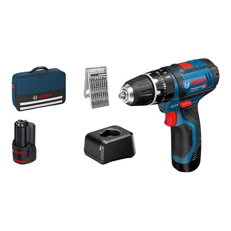 Wiertarka Bosch Bosch Cordless Impact Drill GSB 12V-15 Professional, 12 Volt (blue/black, 2x Li-Ion battery 2.0Ah, 25 bits)