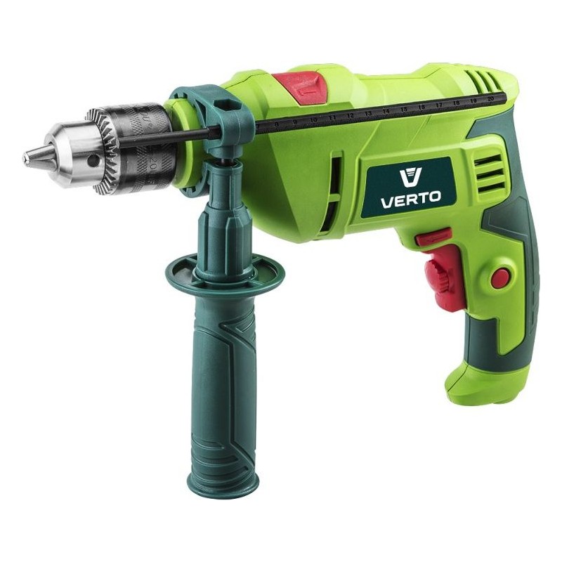 Wiertarka udarowa 500 W z uchwytem kluczykowym 13 mm. Posiada funkcje wiercenia oraz wiercenia z udarem. Moc 500 W umożliwia wiercenie otworów o średnicy do 20 mm w drewnie, 13 mm w betonie oraz 10 mm w stali. Wiertarka posiada przełącznik zmiany kierunku obrotów prawo / lewo, możliwość stopniowej regulacji prędkości oraz blokadę pracy ciągłej. Wyposażona jest w długi przewód przyłączeniowy ,umożliwiający swobodne operowanie narzędziem. Ergonomiczna rękojeść podnosi komfort i bezpieczeństwo pracy. Dostarczana wraz z dodatkową rękojeścią boczną oraz ogranicznikiem głębokości wiercenia. Zgodność z europejskimi standardami bezpieczeństwa zapewnia certyfikat CE. Marka VERTO oferuje asortyment elektronarzędzi i akcesoriów dla każdego majsterkowicza.