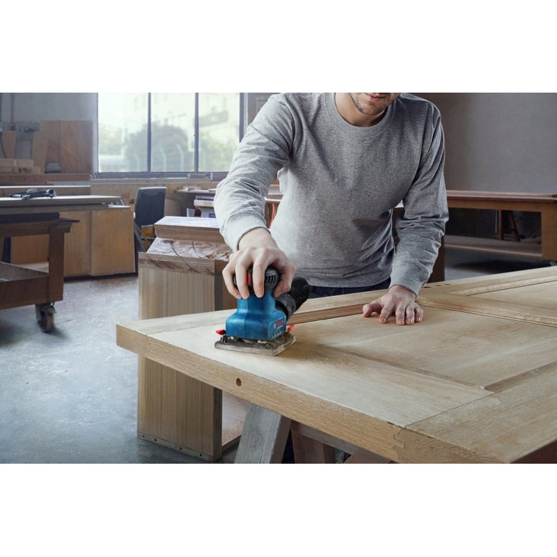 Szlifierka oscylacyjna GSS 140 A firmy BOSCH przeznaczona do szybkiego i precyzyjnego szlifowania oraz polerowania różnego rodzaju materiałów: z drewna, metalu, tworzyw sztucznych, kamienia czy ceramiki, pokrytych farbą, lakierem, czy szpachlą.