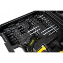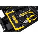 Cały zestaw jest umieszczony w praktycznej walizce, która ułatwia przechowywanie i transport narzędzi. Każdy element ma swoje dedykowane miejsce, co zmniejsza ryzyko zgubienia komponentów i pozwala na łatwe organizowanie narzędzi.