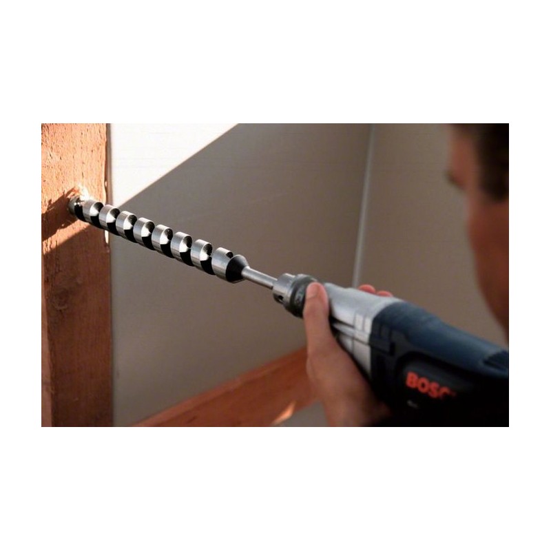 - Odpowiedni osprzęt pozwala na łatwe wykonywanie otworów o dużych średnicach, wycinanie przy pomocy pił otwornic otworów o średnicy maksymalnej 80 mm oraz mieszanie gęstych cieczy