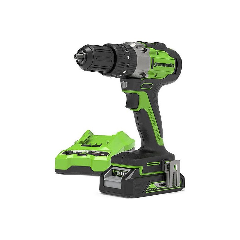 Główną zaletą tego urządzenia jest innowacyjny silnik. Jest to pierwsza wiertarko-wkrętarka Greenworks 24V z silnikiem bezszczotkowym. Bez szczotek narzędzie wytrzyma o 40% dłużej niż jego szczotkowy odpowiednik. Ponadto, ze względu na brak tarcia szczotki, moc narzędzia jest zwiększona, a wibracje zmniejszone, dzięki czemu praca z nim jest wygodniejsza.