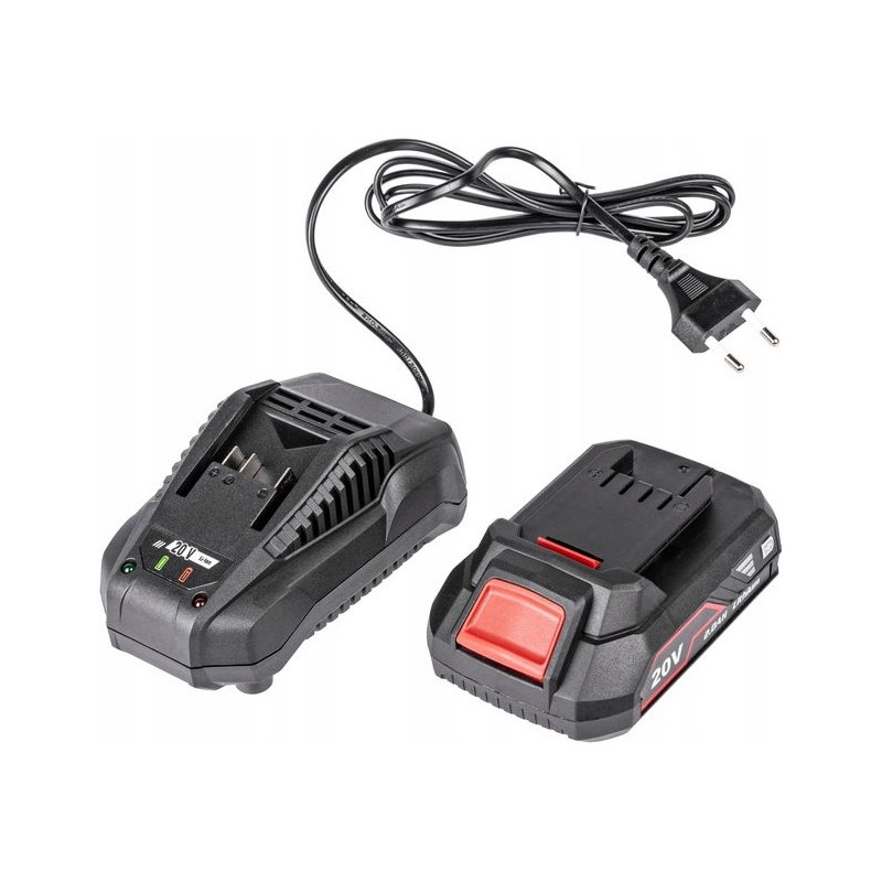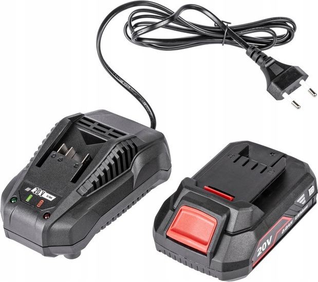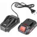 Samozaciskowy uchwyt umożliwia szybki montaż i demontaż wierteł lub końcówek o średnicy od 1 do 13 mm, a zamontowana w uchwycie dioda LED oświetla miejsce wiercenia lub wkręcania, ułatwiając prace w słabo oświetlonych miejscach. Do ładowania akumulatora można użyć dołączonej szybkiej ładowarki, której wystarczy niespełna 1 godzina do pełnego naładowania akumulatora. Wkrętarka jest dostarczany z ładowarką, klipsem do zawieszenia na pasku oraz baterią 2,0 Ah. Dzięki wskaźnikowi LED zawsze będziesz mieć przegląd stanu naładowania akumulatora.