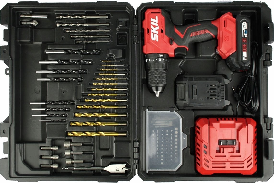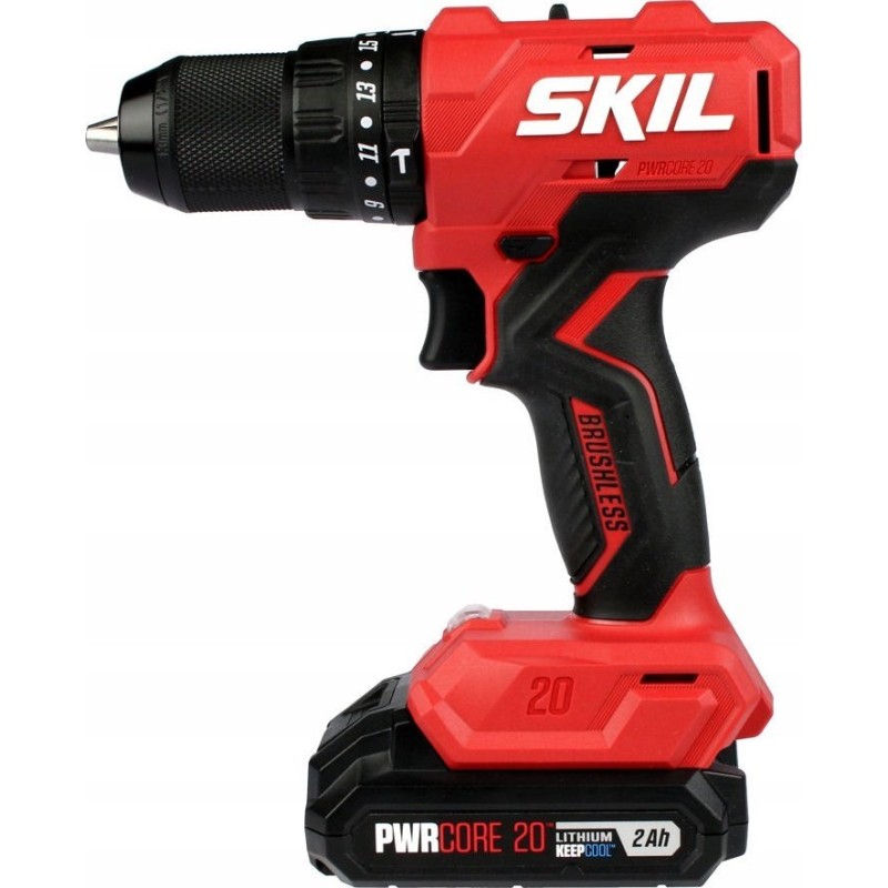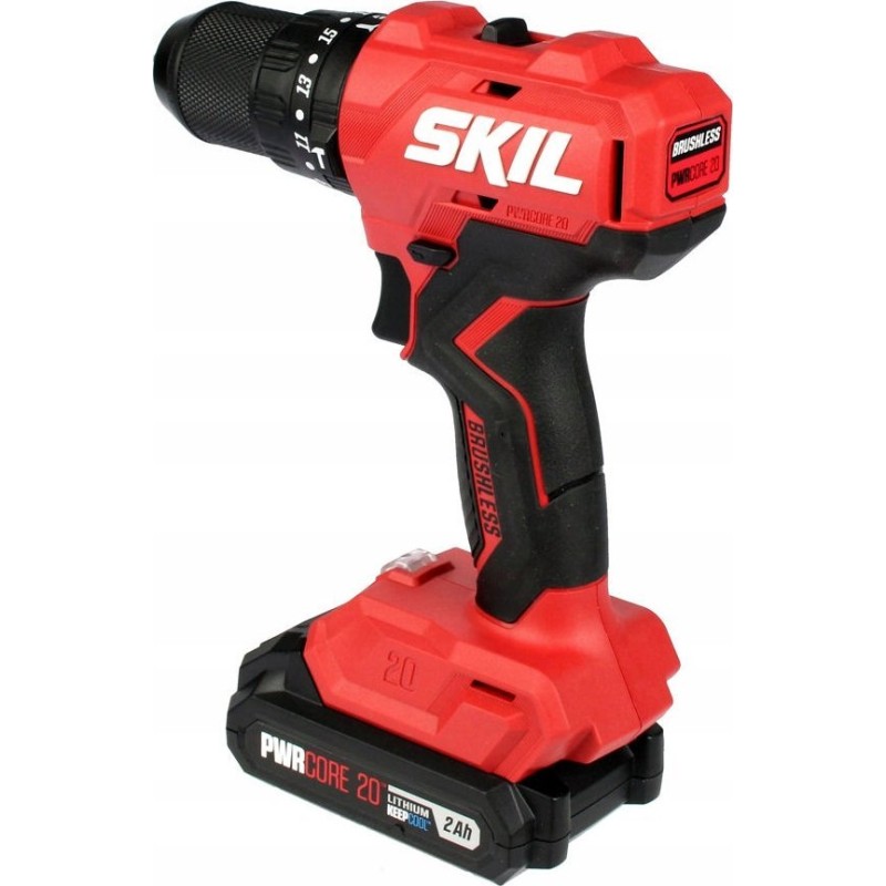 Bezszczotkowy silnik prądu stałego 20V BRUSHLESS firmy SKIL zapewnia bardzo wydajną i komfortową pracę podczas wkręcania wkrętów i śrub oraz podczas wiercenia otworów w drewnie, metalach i tworzywach sztucznych, jest szybszy, mocniejszy i ponad 10 razy trwalszy od porównywalnego silnika szczotkowego.