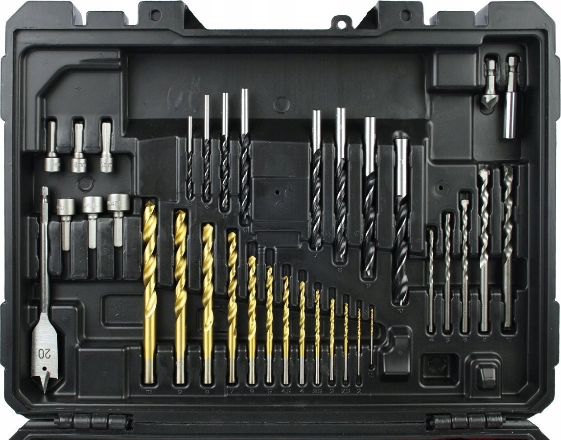 - 100 sztuk dodatkowych akcesoriów (końcówki, wiertła, nasadki)