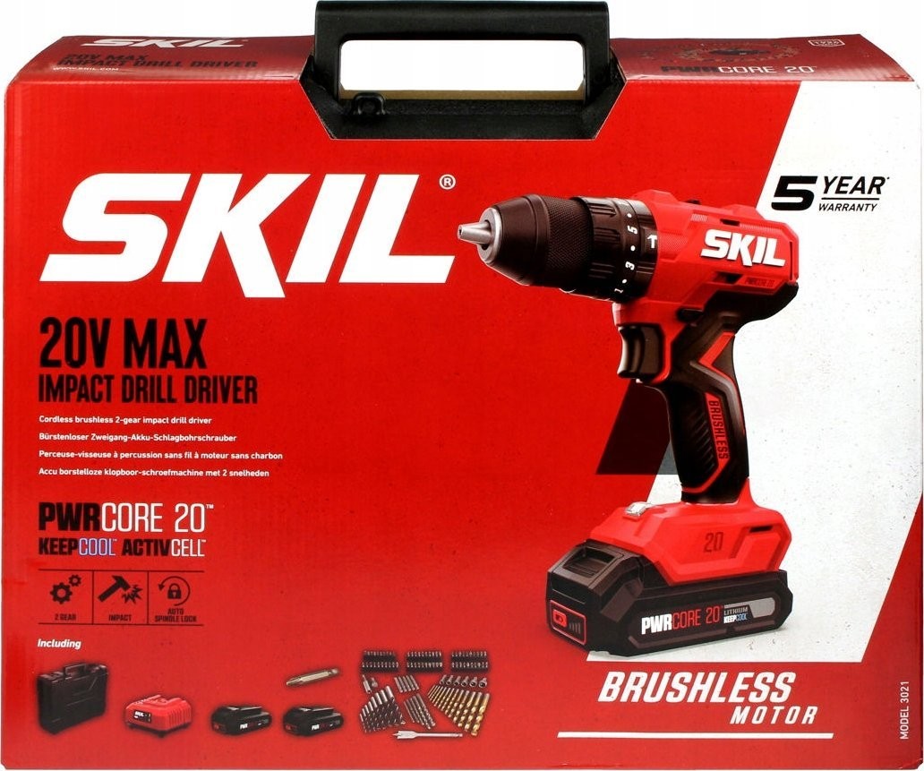 Bardzo poręczna i mocna, dwubiegowa wkrętarko-wiercąca na akumulator 20V Max (18V) model 3021 firmy SKIL, która poradzi sobie ze wszystkimi wymagającymi pracami związanymi z wkręcaniem oraz wierceniem w drewnie, metalu, czy tworzywach sztucznych, a dzięki układowi uderzeniowemu również w cegle, kamieniu czy betonie.