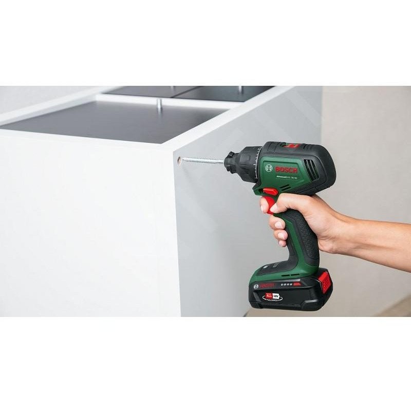 Wkrętarka Bosch AdvancedDrill 18V-80 Quicksnap jest częścią systemu 18V POWER FOR ALL, co oznacza, że jeden akumulator może być używany z innymi narzędziami z tej samej serii. To wygodne rozwiązanie, które pozwala na oszczędność miejsca i pieniędzy.