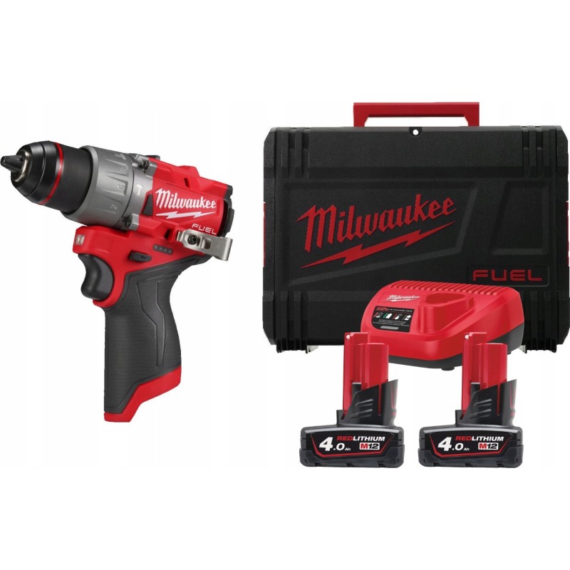 - W zestawie: 1x wiertarko-wkrętarka M12 FPD2, 2x akumulator 4.0Ah M12B4, 1x ładowarka C12C, 1x walizka HD BOX