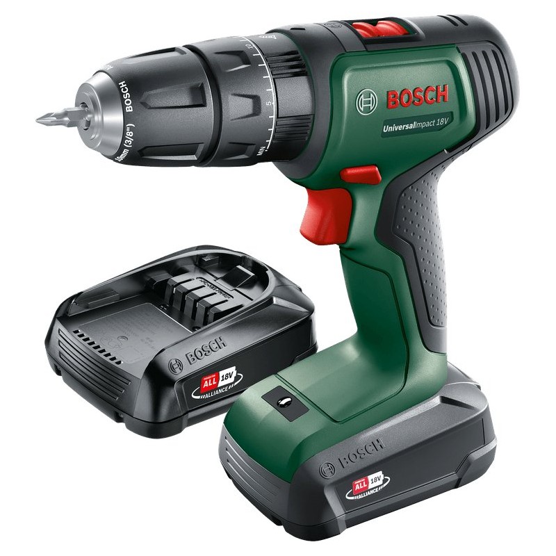 Wydajna i lekka, kompaktowa wiertarko-wkrętarka udarowa stanowi idealne połączenie mocy i wszechstronności. Elegancka i ergonomiczna konstrukcja zapewnia wygodną obsługę. 20 ustawień momentu obrotowego oraz możliwość wyboru wiercenia z udarem ułatwiają dobór odpowiedniej mocy do każdego zadania. 2-stopniowa przekładnia planetarna o wysokich osiągach spełnia wymagania każdego zastosowania. UniversalImpact 18 V jest narzędziem przeznaczonym do wiercenia i wkręcania w drewnie i metalu, a także do wiercenia z udarem w kamieniu i innych twardych materiałach. Dzięki wyposażeniu w 10-milimetrowy trzonek i uchwyt wiertarski z pojedynczą tuleją, wkręcanie i wymiana wiertła są bardzo łatwe.