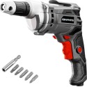 Wiertarko-wkrętarka posiada uchwyt roboczy na bity ¼” 6,35 mm oraz w zestawie -praktyczny uchwyt magnetyczny. Charakteryzuje się również przydatną regulacją głębokości wkręcania wkrętów.