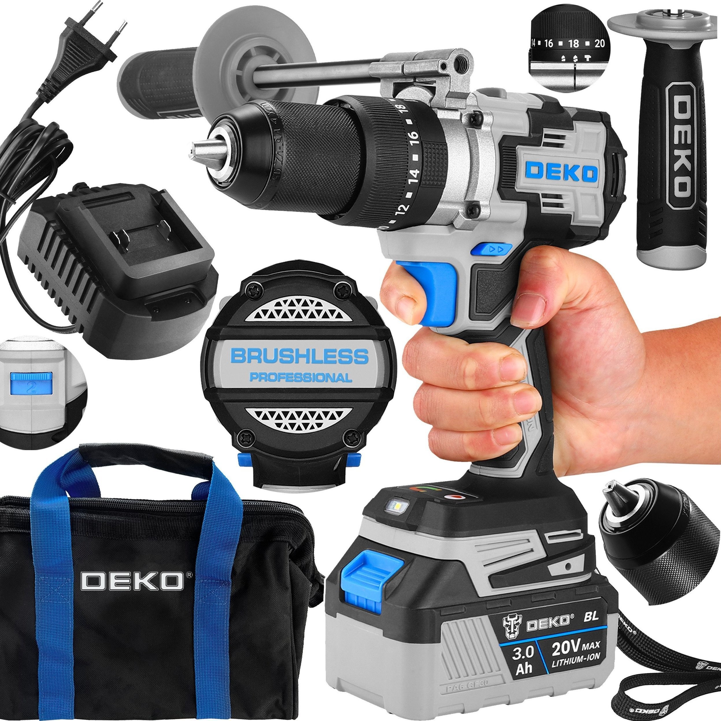 Specyfikacja techniczna Wiertarko-wkrętarki Deko DKBL20XP01-S1