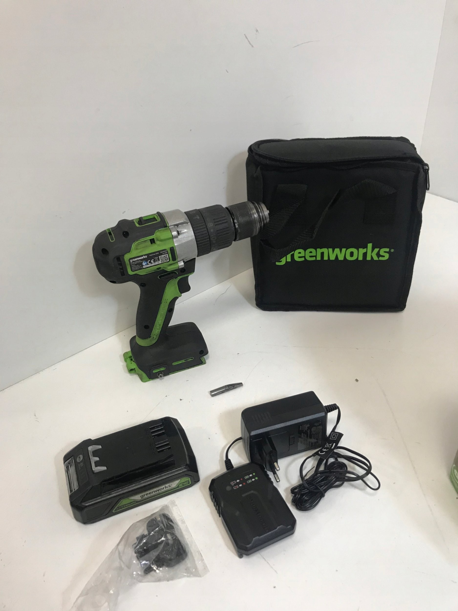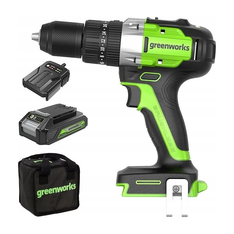 24V wiertarko-wkrętarka GD24DD60K2 Greenworks zestaw ładowarka + aku 2Ah + futerał miękki