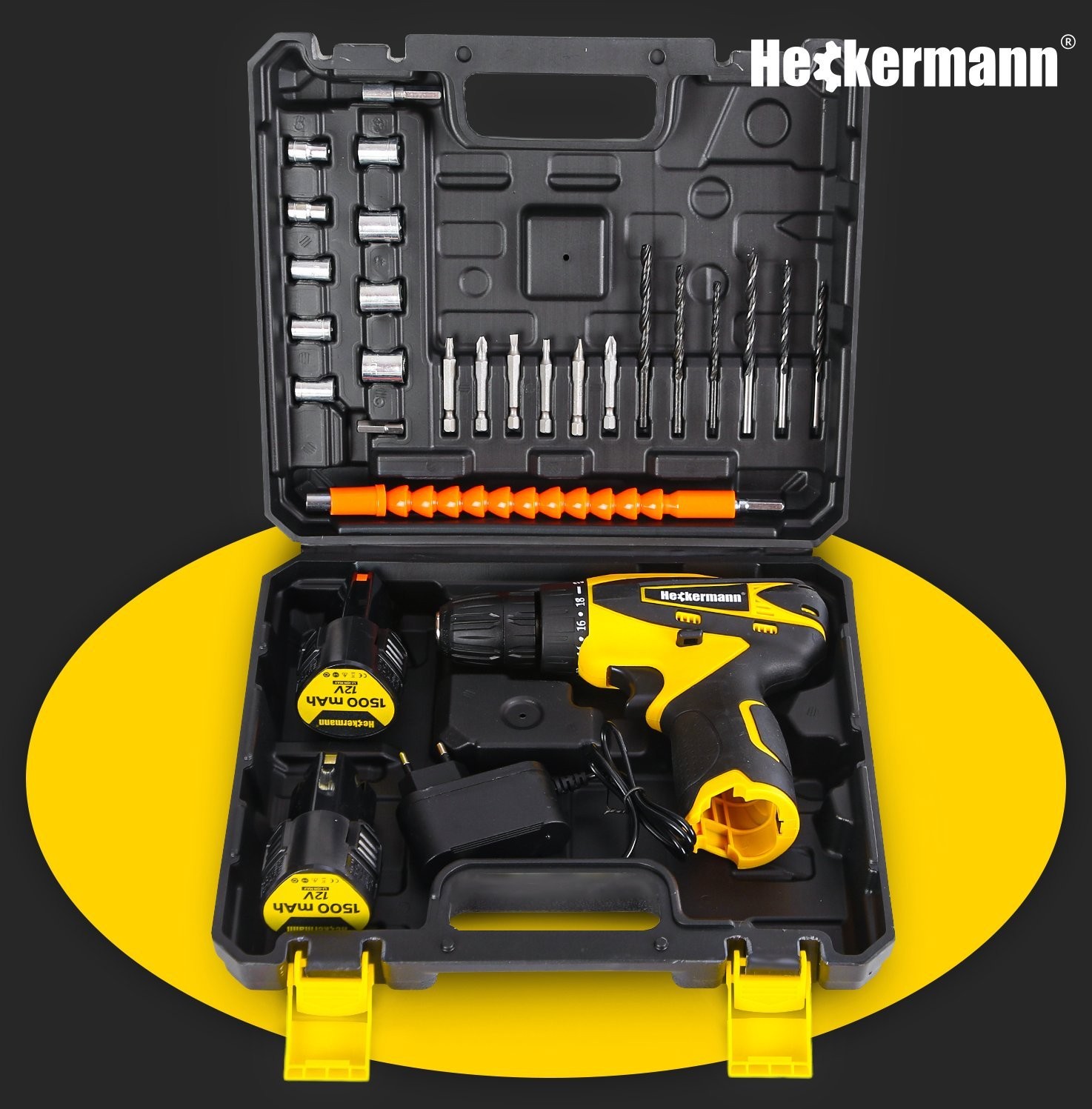 - Na szczęście Heckermann AJW12 posiada dwa akumulatory o pojemności 1500 mAh 12V, dzięki czemu możesz wymieniać je na zmianę i pracować bez przerwy.
