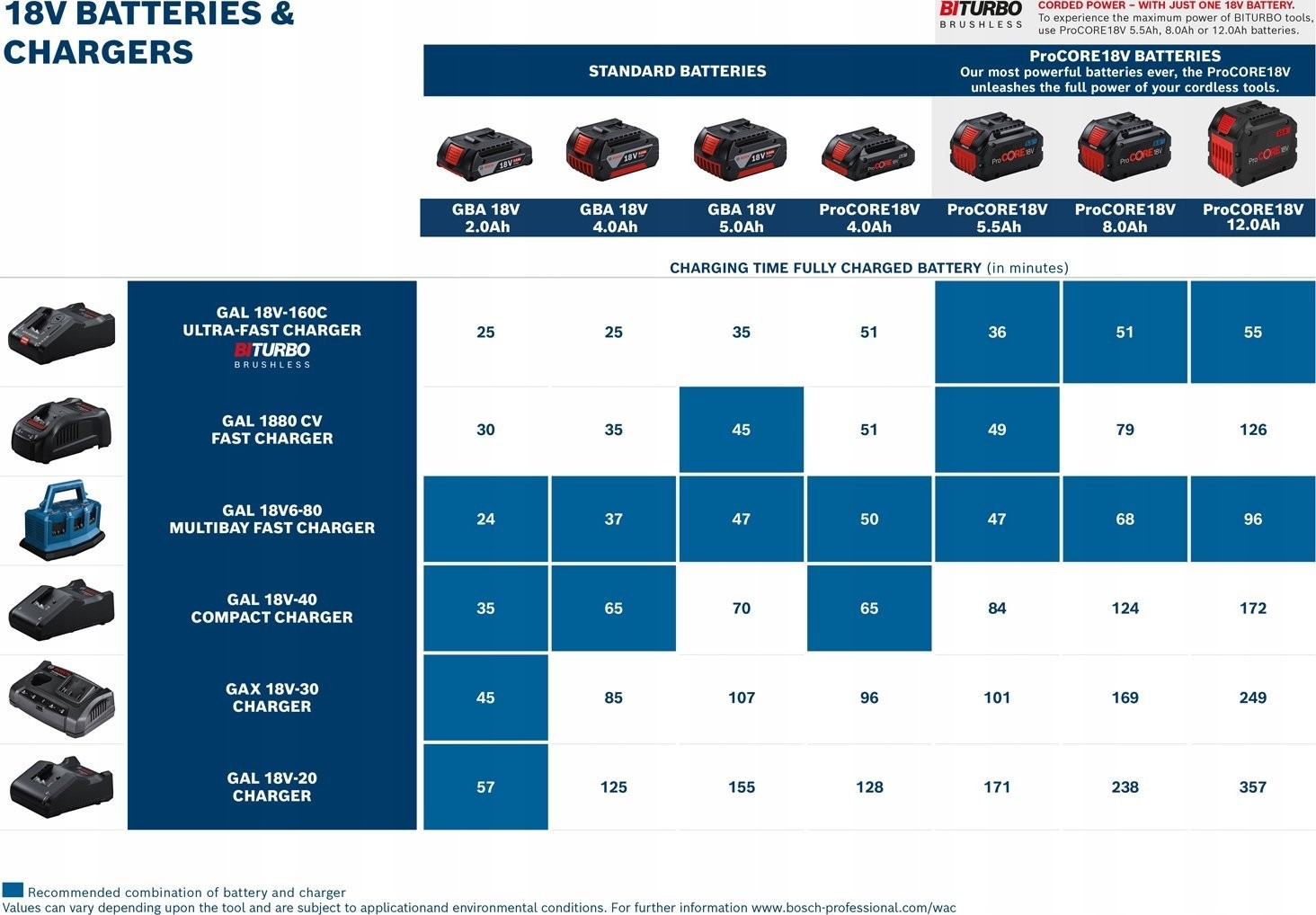 - Czas ładowania do 80% (ładowarką GAL 18V-160 C): 32min
