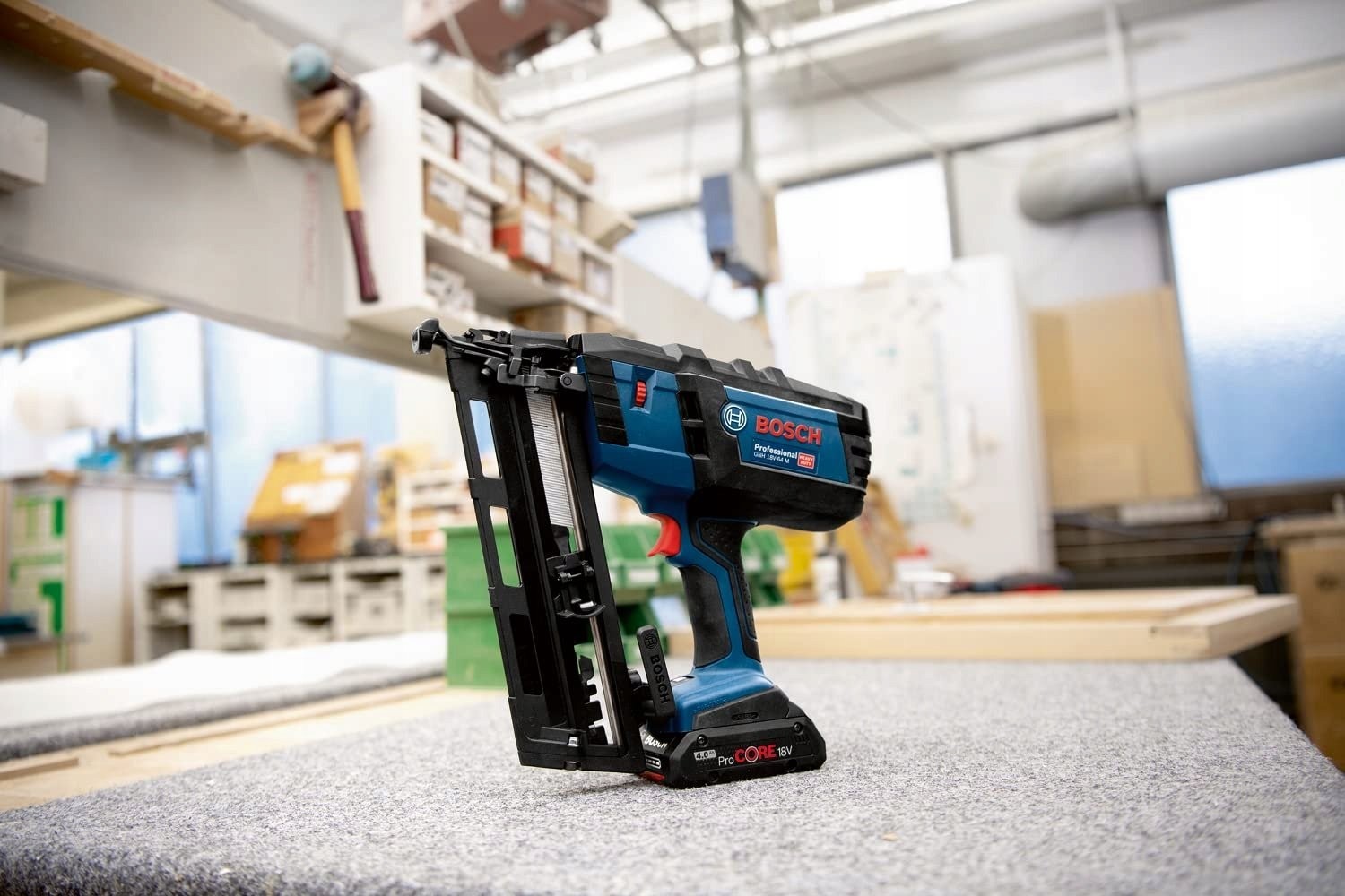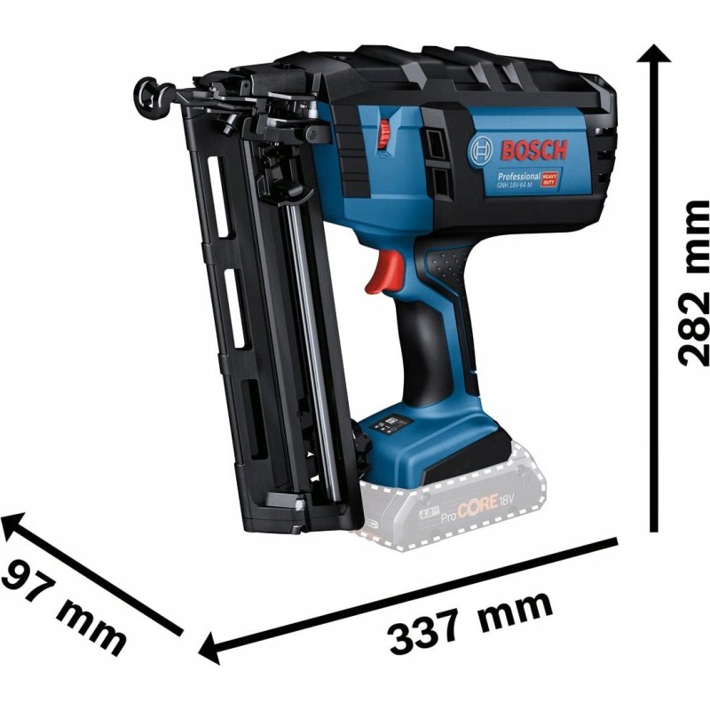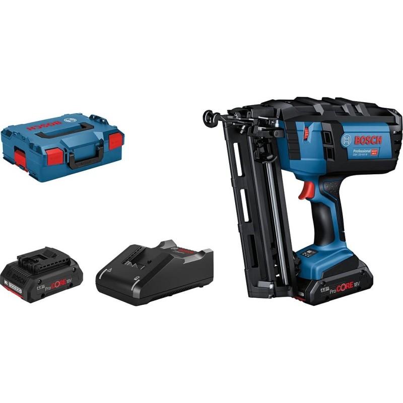 Gwoździarka akumulatorowa Bosch Professional 18 V system GNH 18 V-64 M (maks. średnica gwoździ 1,6 mm, długość gwoździ 64 mm, 2 x akumulator ProCORE18 V 4,0 Ah, ładowarka GAL 18 V-40, w L-BOXX 136)