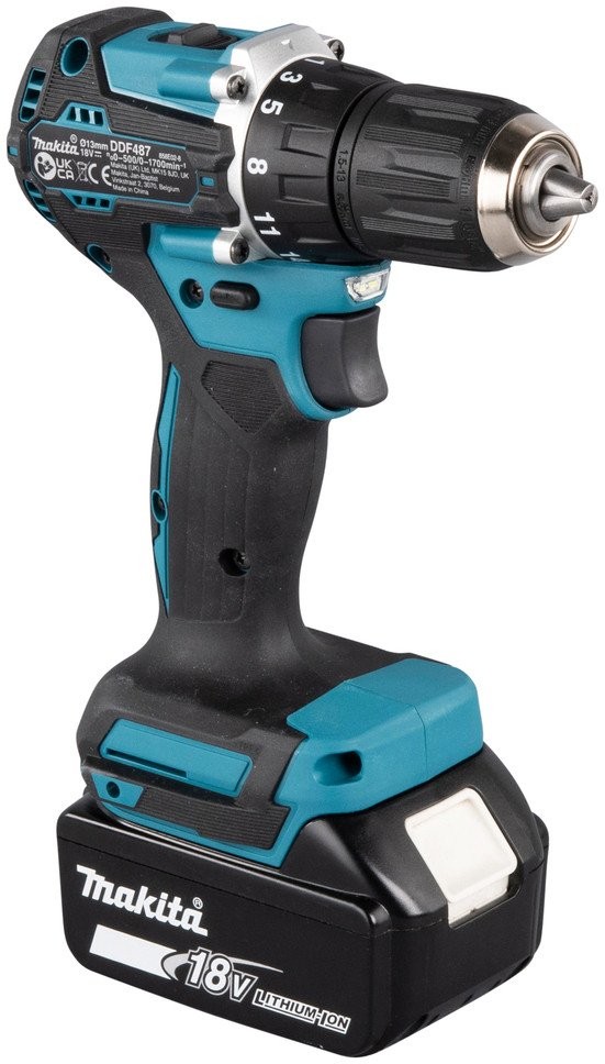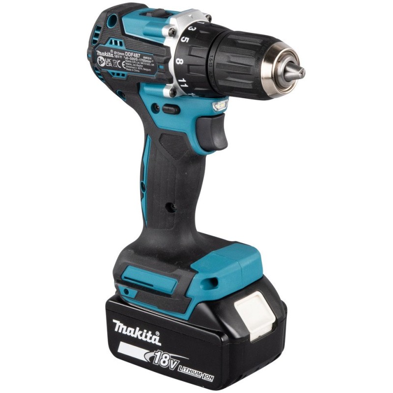 Makita DDF487RFE3 wkrętak zasilany/zakrętark udarowy 1700 RPM Czarny, Niebieski, Stal