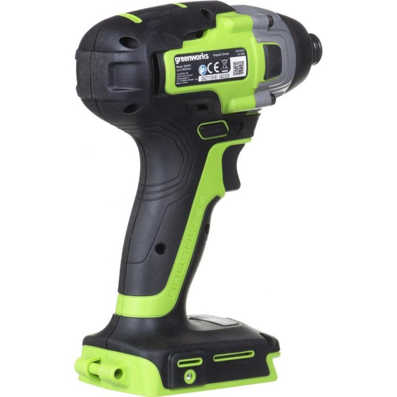Główną zaletą tego urządzenia jest innowacyjny silnik. Jest to pierwsza zakrętarka udarowa Greenworks 24V z silnikiem bezszczotkowym. Bez szczotek narzędzie wytrzyma o 40% dłużej niż jego szczotkowy odpowiednik. Ponadto, ze względu na brak tarcia szczotki, moc narzędzia jest zwiększona, a wibracje zmniejszone, dzięki czemu praca z nim jest wygodniejsza.