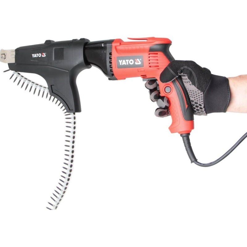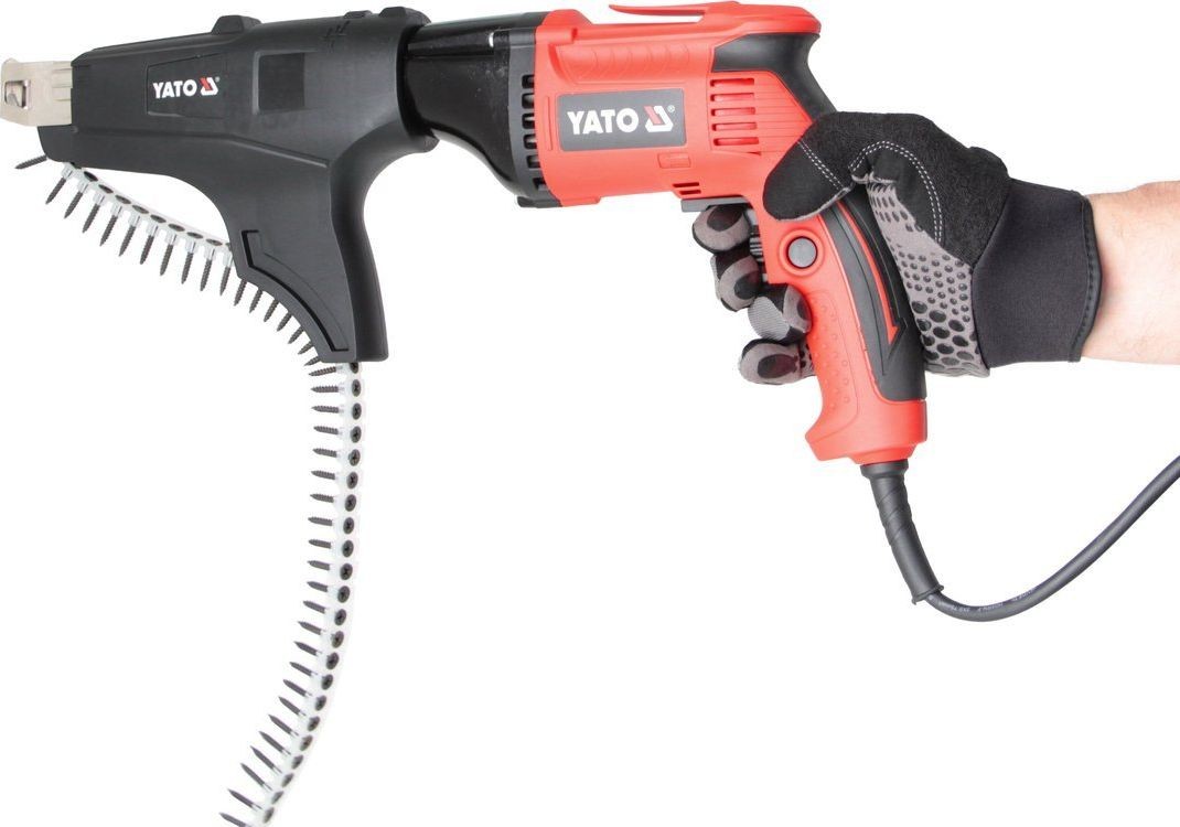Wkrętarka do pracy z wkrętami magazynkowymi lub pojedynczymi. Znacznie przyspiesza prace przy suchych tynkach dzięki użyciu podajnika taśmowego na wkręty i dużej prędkości obrotowej wynoszącej aż 5500 obr/min.
