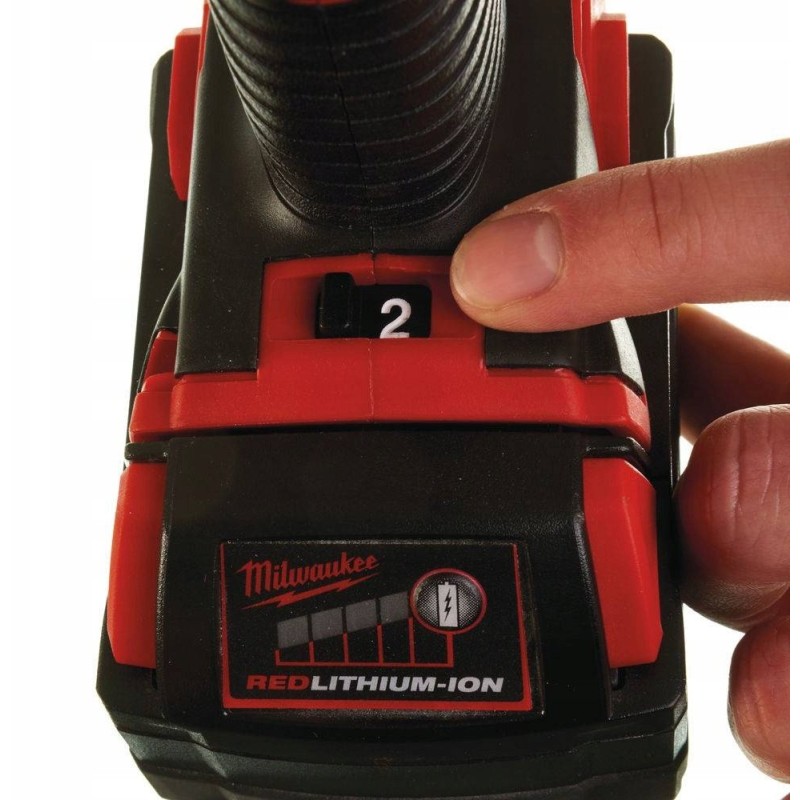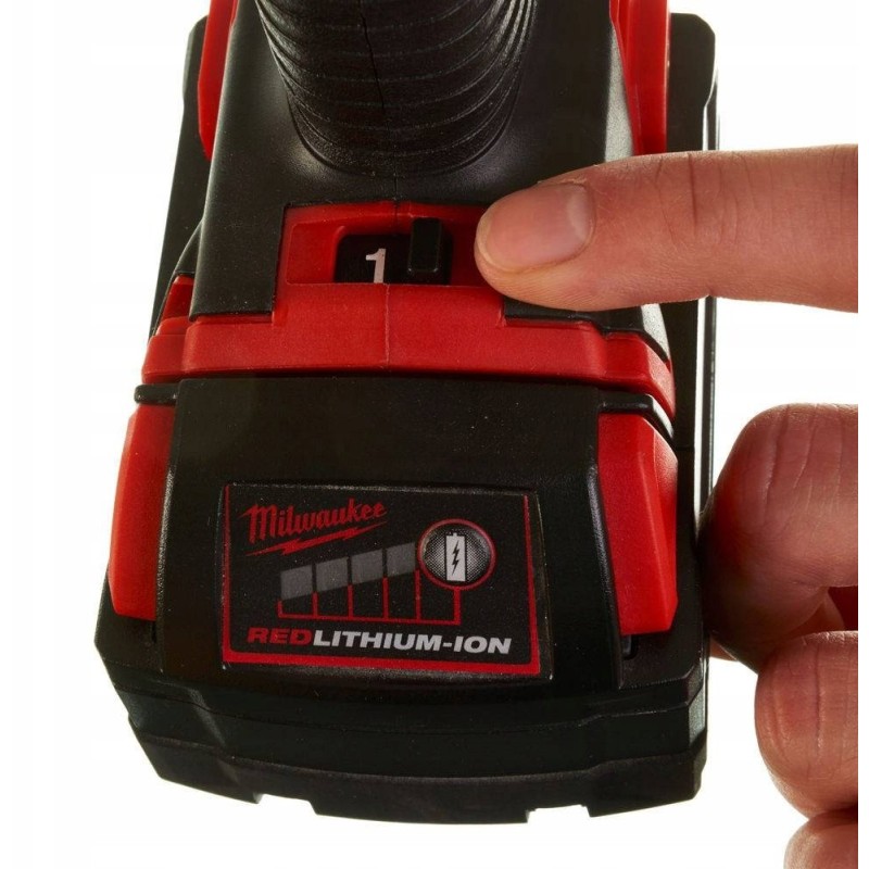 Milwaukee M18 BRAID-0 jest wyposażona w wskaźnik poziomu naładowania akumulatora, co umożliwia bieżące monitorowanie stanu energii. Dodatkowe oświetlenie diodowe zwiększa funkcjonalność narzędzia, umożliwiając pracę w słabo oświetlonych miejscach.