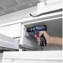 Wiertarko-wkrętarka akumulatorowa GSR 12V-15. Wygodny zasilacz. Wyjątkowo krótka konstrukcja o długości 169 mm zapewnia optymalną obsługę, szczególnie przy wierceniu i wkręcaniu nad głową oraz w ciasnych przestrzeniach. Profesjonalne wykonanie: 2-biegowa przekładnia zapewnia mocny moment obrotowy 15 Nm (miękkie wkręcanie) podczas wiercenia (do 19 mm) i wkręcania (do 7 mm). W pełni funkcjonalny uchwyt wiertarski 10 mm z automatyczną blokadą.