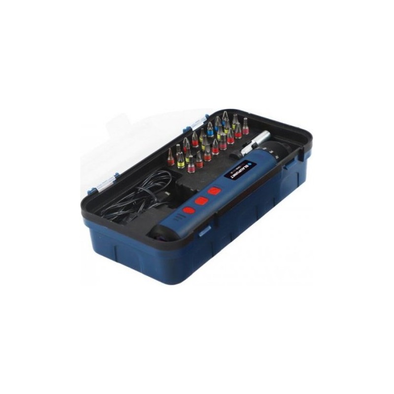 - Zestaw zawiera: Wkrętak CD2010, bity 26 szt., etui z tworzywa sztucznego, instrukcje obsługi, karta gwarancyjna