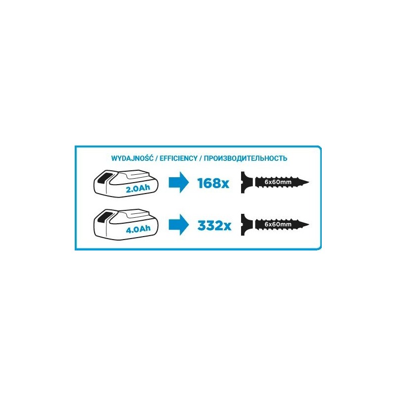 - Pracuje z akumulatorami 18V Li-Ion, 2Ah lub 4Ah Energy+